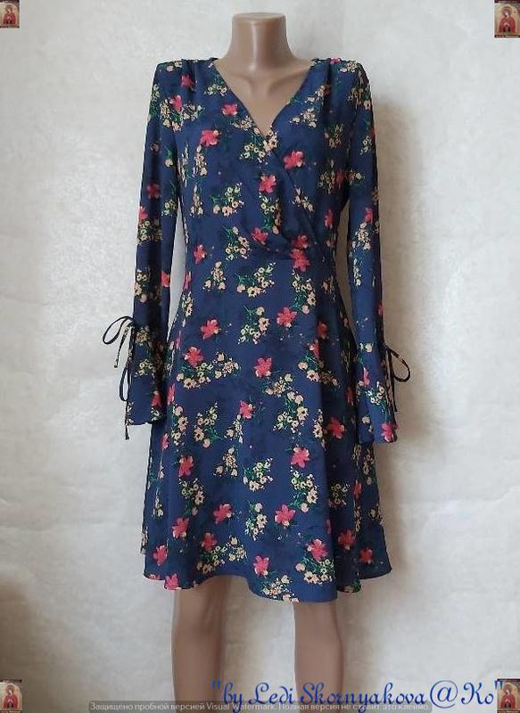Фирменное primark лёгкое платье миди в цветочный принт на синем фоне, размер с-м