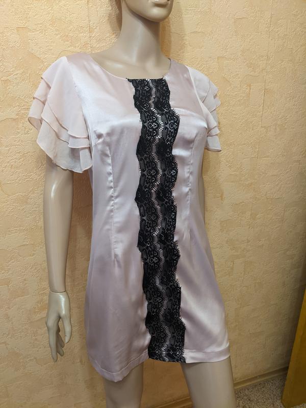 Продам ніжне плаття в чудовому стані. Пудрового кольору з чорним мереживом, рукави з воланами. Розмір М.