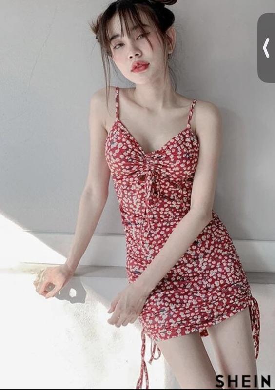 Красива актуальна сукня на завʼязках від Shein!!! Дуже еластична тканина-чудво тягнеться!!! Красивий принт, регулюється довжина+бретельки! Також можна регулювати бюст! Заміри надаю при потребі! По бірці Л, можна і на м!