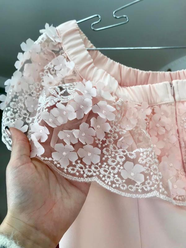 Платье нежно розового цвета с невероятной отделкой Ззади на замочке, размер 42-44