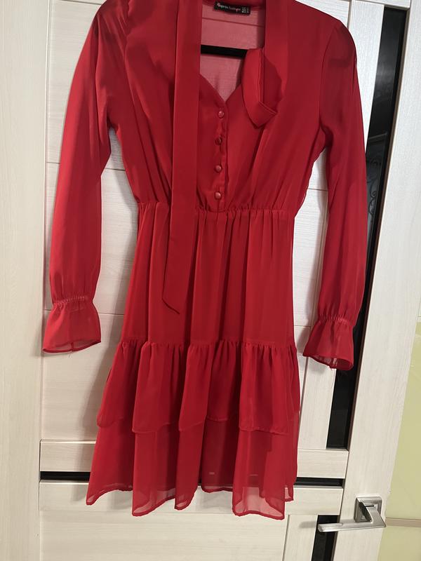 Шифоновое платье красного цвета в красивом состоянии, пару раз одета.