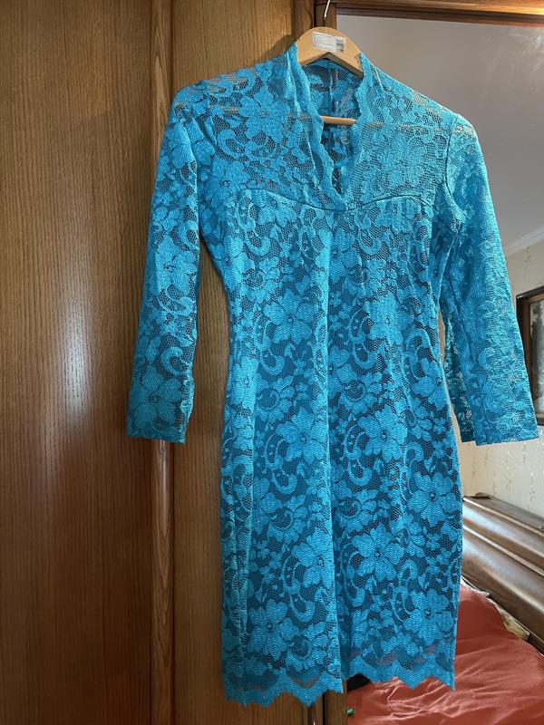 Гипюровое платье очень красивого бирюзового цвета. Размер S-M.