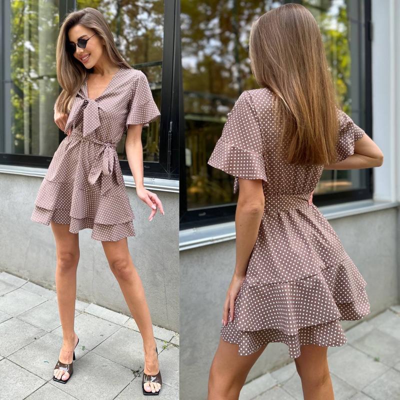 Сукня горох зав’язка ☘️ Розміри С (42-44) та М (44-46) Тканина принтований софт На поясі резинка та зйомний пояс із тканини Кольори — хакі, білий, темно-синій, капучіно, червоний