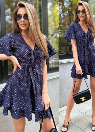 Сукня горох зав’язка ☘️ Размеры С (42-44) и М (44-46) Тканина принтований софт На поясе резинка и съемный пояс из ткани Цвета - хаки, белый, темно-синий, капучино, красный
