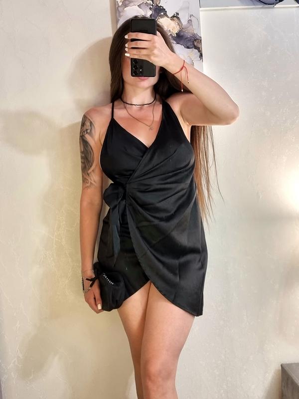 Черное короткое мини платье на запах с голой спиной plt