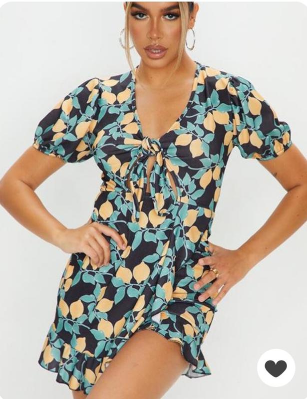 Основной цвет черный, лимонный принт с завязками спереди. Тянется. Думаю сядет и на полный М. Замеры: от подмышки к подмышке - 41 см, пот - 38 см, поб - 48 см, длина - 85 см Состав: 95% полиэстер, 5% эластин