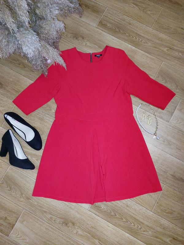 Очень красивое красное платье. Размер 18. Сзади металлический замок ПОГ 56 ПОТ 48 ПОБ 62 Длина 90 Длина рукава 46