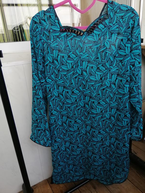 Легкое шифоновое платье, слегка просвечивает. Можно под поясок носить как тунику. По бокам есть разрезы