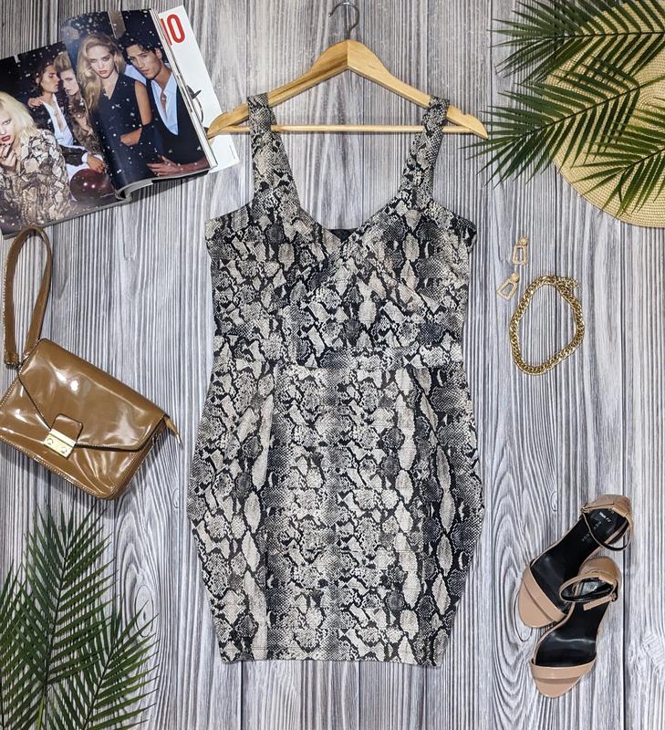 Доброго дня, для точного визначення підійде річ або ні, порівнюйте будь-ласка з вимірами своєї подібної речі, а не зі своїми об'ємами. Трендова натуральна бандажна сукня в пітоновий принт. Широкі брителі, не регулюються. Сідає по фігурі. Тканина тонка, натуральний трикотаж. Дуже якісна, м'яка та приємна до тіла. Гарно тягнеться, не просвічується. Розмір по бірці: 12/42 Колір: Бежевий, Коричневий, Чорний Принт: Пітон Стан: Новий(сток) Дефекти: Без дефектів Виміри зроблені в півобхваті. Довжина виробу від плеча 91см Довжина від пахви до низу 70см Висота пройми 25см Півобхват грудей 42см Півобхват талії 40см Півобхват бедер 48см Півобхват низ 48см Склад тканини : 88%Віскоза, 10%Поліамід, 2%Еластан. Оплатити можна через Безпечну покупку або оплатити на карту Приватбанку. Доставка можлива Укрпоштою або Новою поштою. Бронювання на оплату тільки одна доба. Не забудьте ПІДПИСАТИСЬ щоб не пропустити новинки та розпродажі. Вдалих покупок 🌹