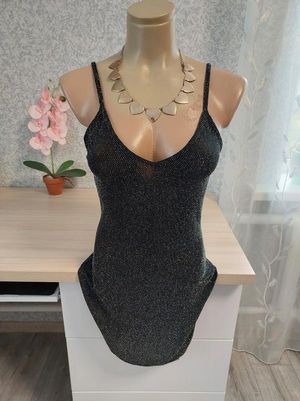 Женское черное мини платье на тонких брителях, из полиэстра, нейлона и люрекса, планом 12,40. В идеальном состоянии, красиво тянется. Все замеры на фото.