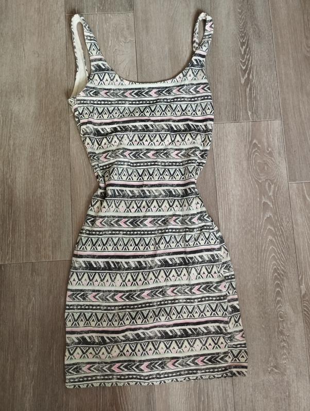 Платье спринтом, качество отличное. Стильное, красиво сидит по фигуре. Размер С