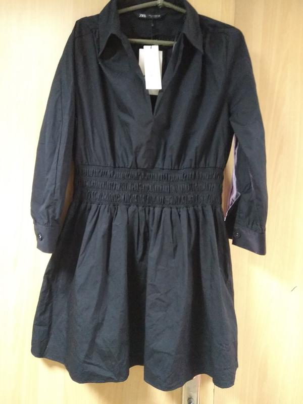Чёрное катоновое платье ,талия на широкой резинке.Рукав внизу на манжете.Ог 110, талия 82+, Об 150,рукав 52, длина 86.