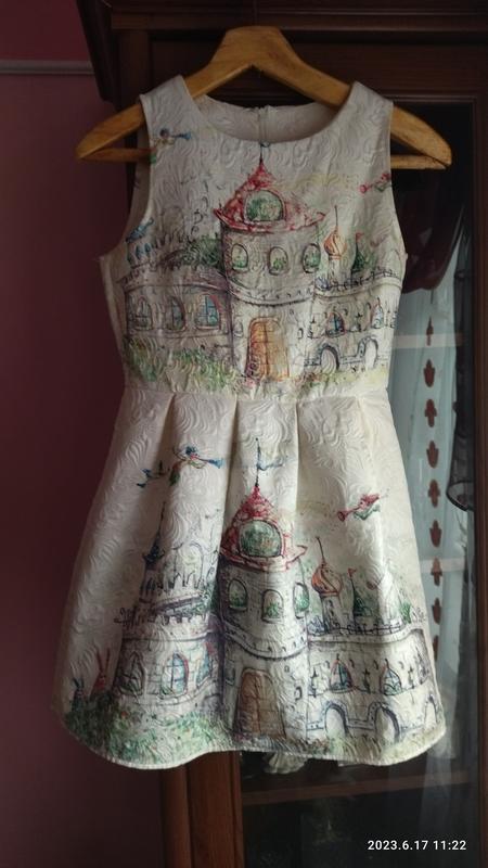 Фантастическое летнее подростковое платье " Алиса в стране чудес". Чрезвычайно качественная ткань. Плотная, отлично держит форму складок, не деформируется и не мнется. Помимо фантастического рисунка, сама ткань тоже имеет невероятно красивый узор. Размер L. длина по спинке 78