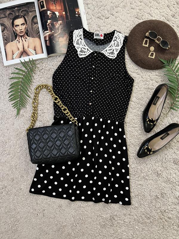 Для более точного определения, замеры, сравнивайте с измерениями подобной вещи, а не со своими объемами. Милое мини платье в горошек. Ткань тонкий вискозный трикотаж. Не просвечивается, тянется. Застегивается на пуговицы до талии. Имеет петли для пояска (пасок не в комплекте). Декоративный кружевной воротничок. Состояние: идеальный. Эффекты: нет. Размер на бирке: 14\40 рдинаторы изделия измеряются в полуобхвате, а не от шва до шва!ook Замеры изделия: Плечи 31 см., Высота проймы 24 см., полуобхват груди 48 см, полу охват талии 37-55см., полуобхват бедер 55см, полуобхват низ 64см., Длина по спине 86см. Длина от плеча 88 см. Состав ткани: 95% вискоза, 5% эластин. Страна производитель: Румыния. Бренд: River Island. Оплата и доставка: Оплата на картку монобанк. Брожение на оплату только 24г. При изменениях цель покупать обязательно сообщайте! Доставка: На время введения военного состояния уточняйте или возможна доставка до Вашего пункта. Актуальные новости можно уточнить на сайте перевозчика и по номеру телефона контакт-центров. Не забудьте ПОДПИСАСТЬ, чтобы быть в курсах всех новинок и распродажей!