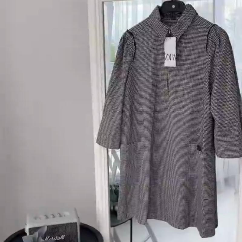 красивое платье в гусиную лапку на размер м-л, легкая Длина 88 см, ширина под грудью 52 см, плечи 38 см, рукав от плеча 49 см, ширина внизу 71 см