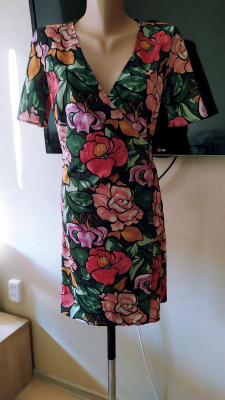 Новое натуральное яркое платье на запах.Пог-46,длина-90.
