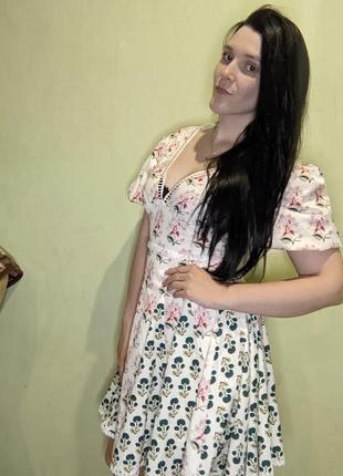 платье пышное на лето☁️ с подюбником и рукавами фонариками красивый вырез из вышитый