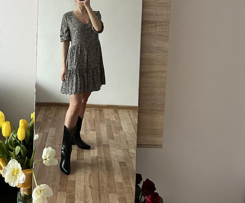 Стильное мини платье-мини, свободный крой Натуральная ткань, приятная к телу Стан - идеальный Замеры Длина-83 П.о.г-49 Рукав-41 П.о.т-43 П.о.б-55 Плечи-38,5