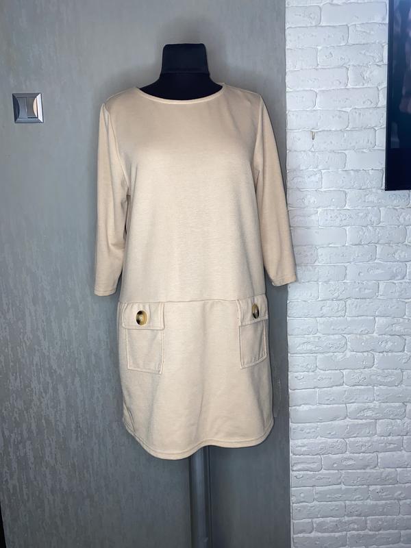 Трикотажное платье с накладными карманами платья из плотного трикотажа Primark, XXXL 54р. Длина 85см, рукав 46см, плечи 40см, ПОГ 54см, ПОб 57см