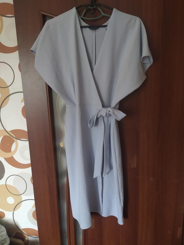 Платье на запах в идеальном состоянии. Хорошее качество. Нежного голубого цвета. Длина от талии 60 см Ширина по талии 32 см но при необходимости можно слегка перешить пуговицу, фасон позволяет)
