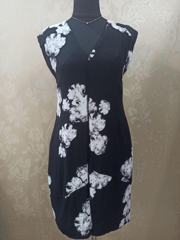 Плаття чорне з квітами, віскоза, підкладка шифон, з обох боків внутрішні кармани, Mint Velvet. Розмір С-М. Заміри: ОГ 92-94, ОТ 90, ОБ 108, довжина 92.