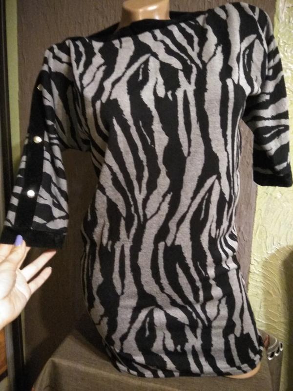 Весеннее платье, рукав 3/4 на кнопках, которые все растегиваемые, на вставке из плотного чёрного велюра. Интересный крой. Можно носить как тунику. Размер S. Нужно подрубить низ, в нескольких местах лопнула нитка. В остальном все в порядке.