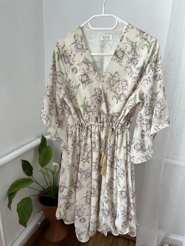 Очень нежное и красивое платье, состояние идеальна, дефектов нет! В поясе регулируется ширина, все рюши держат формулу за счет того, что там вставлена леска. Снизу присутствует подкладка. Размер - с, возможно и на м Замеры: Длина- 91 см Ширина по плечах- 37 см Талия регулируется! Фото сделаны без обработки