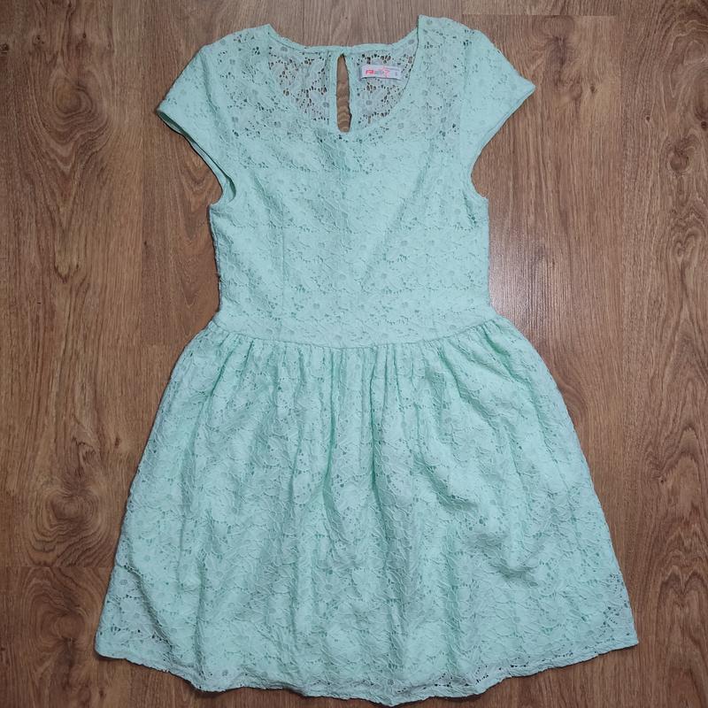 Легкое летнее платье мятного цвета фирмы FB Sister. Кружевное на подкладке. Сзади застегивается на молнию и пуговицу. В идеальном состоянии. Замеры (как именно они сделаны, видно на фото): общая длина - 79 см длина юбки - 41,5 см полуобхват груди - 33,5 см полуобхват талии - 32,5 см длина рукава - 9 см