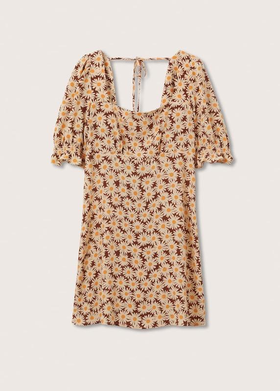 Сукня з малюнком і рукавами буфами,розміри xs Струмуюча тканина. Квітковий візерунок. Короткий зріз. Короткий рукав-буф. Спинка з вирізом. Еластичний збір ззаду. Завʼязка на спині