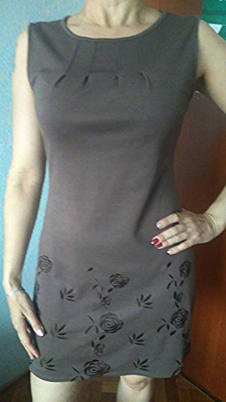 Красивое трикотажное платье! Цвет : коричневый Платье оригинально застрочено в складочки на груди (фото). В передней части снизу украшено вышитыми розочками ! Длина = 83см. Сг = 46см. Ст = до 40см. Сб = до 49см. Сделает вас неотразимой в повседневной жизни ! Отвечу на все интересующие вопросы, возврата НЕТ.
