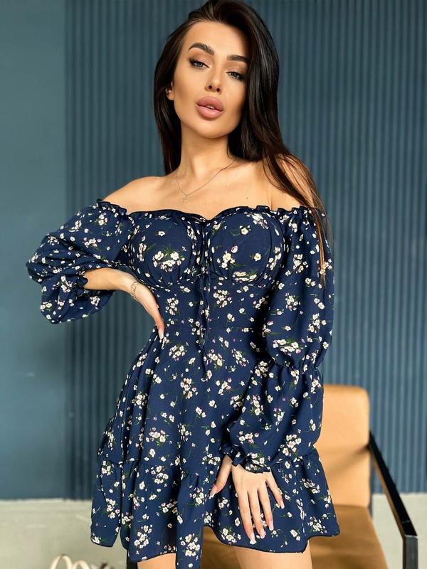 🎨5 цветов! шикарное женское платье в цветы синее женское платье