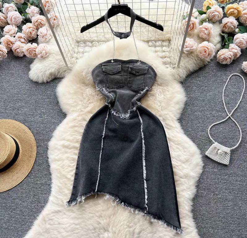 Чудові, джинсові сукні в двох кольорах (чорний, блакитний) • Розмір S • Гарно підкреслює фігуру. • Висока фабрична якість • Можна носити з чокером та без Ціна за одне