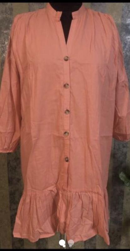 Платье- туника, батист, красивого кораллового цвета,длалина102 построке, рукав-49, перед 95, подмышками 57, размер uk 14
