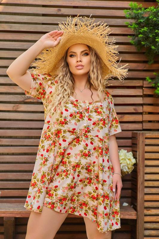 Модель No 429. Платье. Летнее платье с коротким рукавом, впереди планка на пуговицах. Отрезное по талии, юбка платья - полусолнце. Ткань принтованный софт, очень легкая и приятная к телу. Состав: Полиэстер - 95 %, Хлопок - 5%. Цвет: Черный принт. Розовый Принт: 50-52, 54-56, 58-60. Мерки платья 429 по готовому изделию 50-52 Объем груди - 112 см, Длина рукава - 18 см, Обьем талии - 106 см Обьем бедер кофты - 160 см Длина платья - 86 см 54-56 Объем груди - 120 см, Длина рукава - 19 см, Обьем талии - 114 см Обьем бедер кофты - 170 см Длина платья - 88 см 58-60 Объем груди - 128 см, Длина рукава - 20 см, Обьем талии - 122 см Обьем бедер кофты - 180 см Длина платья - 90 см
