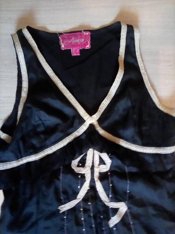 Черное маленькое платье. натуральный шелк. Вдоль бледно-розовые и бежевые ниточки с бусинками. Размер XS/S.