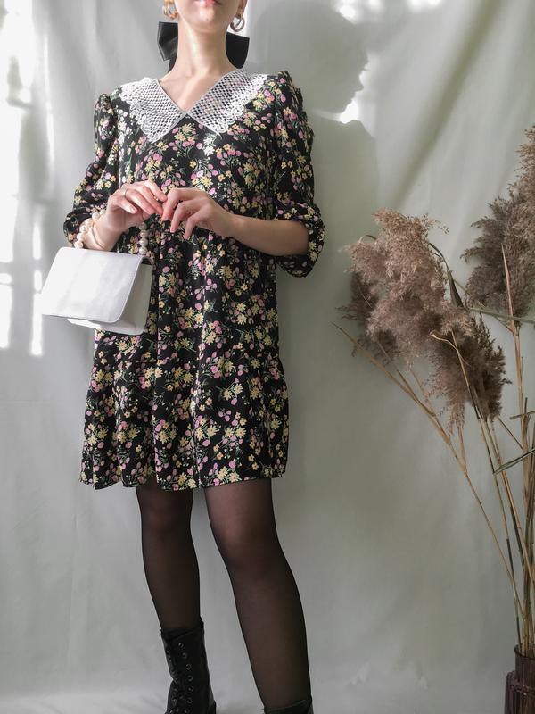 Платье с воротником сарафан ярусное широкое в цветочный принт в цветы под винтаж ретро вин...