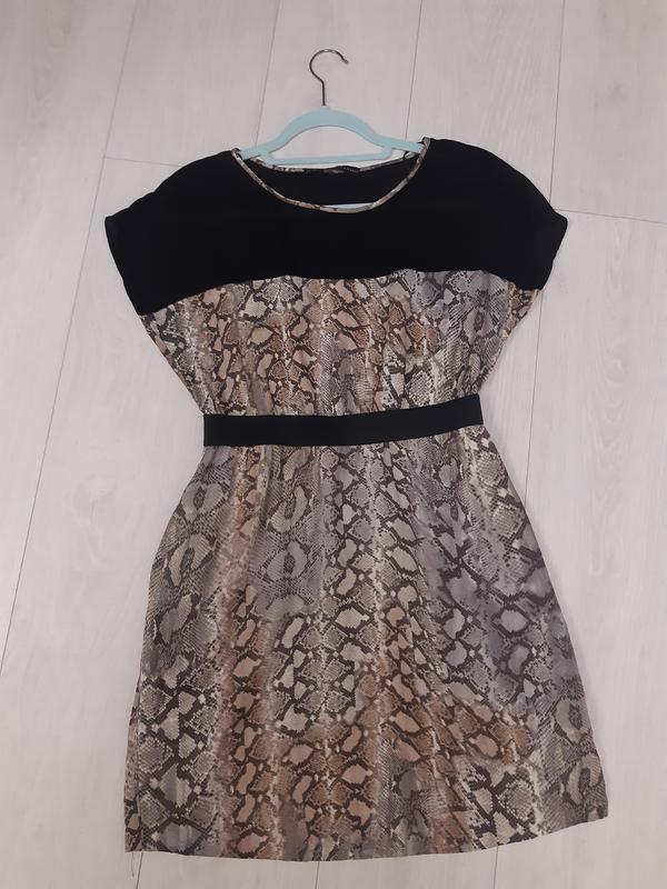 Платье с змеиным принтом. Черная часть - полиэстр, принтованая - вискоза. Есть боковые карманы. Размер около 44, замеры по запросу. Платье в подарок при покупке товара от 300 грн