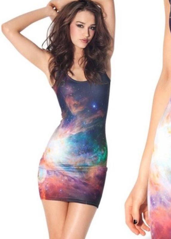 цена платья самая легкая на сайте 😍 Платье австралийской фирмы Black Milk с ярким принтом галактика космос моечный путь, отлично тянется, достаточно плотное. Размер М 100% полиэстер