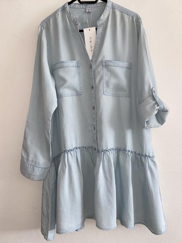 Продам платье голубого цвета новое, с биркой,размер М Рукав можно носить как длинным, так и по локоть Есть дополнительная пуговица