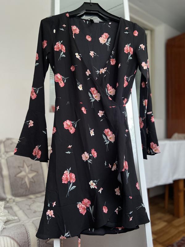 Плаття з рюшами в квітковий принт, на запах Довжина 83 см Пог 38 Пот 34 см Поб 45