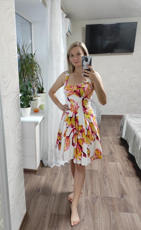 Платье из материала хлопок. невероятно приятное к телу. Имеет легкую подкладку, за счет этого она А-силуэтная. Без недостатков, одевала один раз в день рождения. На мне с настройками 90*68*95. Рост 164. Дополнительные замеры сделают по запросу.