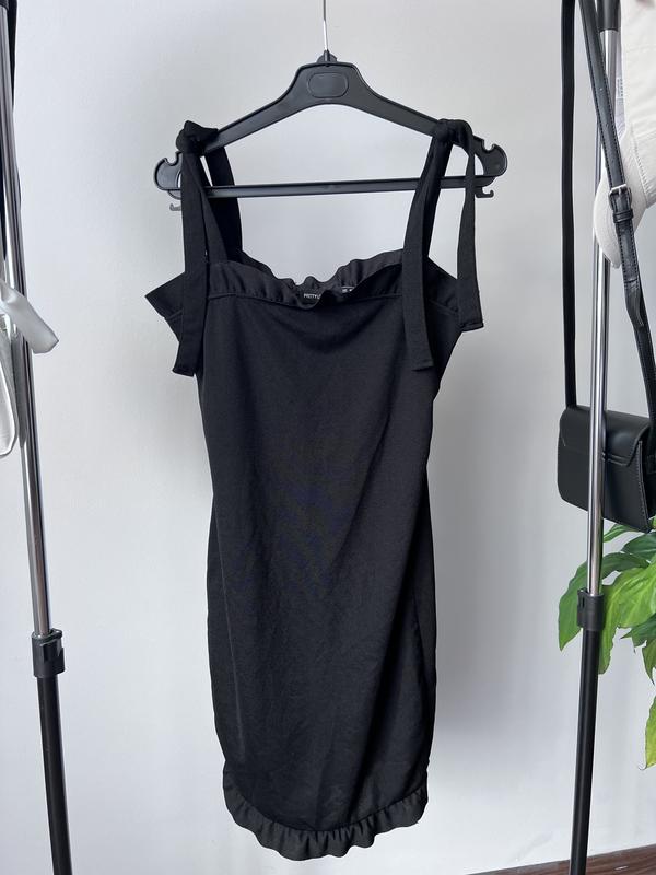 Черное мини платье, шлейки на завязку, поэтому сможете регулировать под себя.