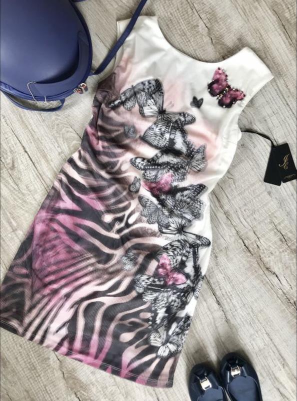 Чудесное платье от Isabel C. ( SOON) с эффектом 3D порхающих бабочек. Размер указан 46, подойдёт на S, M Есть такое же в синем цвете, на пол размера меньше.