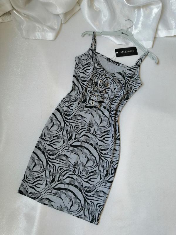 Стрейчевое платье принт зебра с люверсами шнуровка на груди