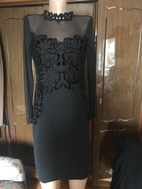 Красивое платье в идеальном состоянии (длина 91,пог40,пот36,поб46 ткань тянется ,по фигуре к низу заужено ,рукав сетка ,ткань плотный трикотаж на размер с смотрите замеры )