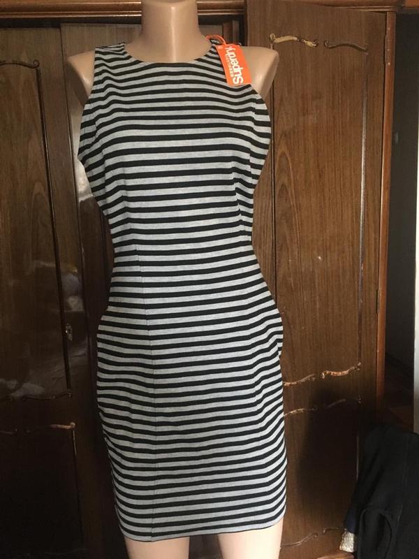 Очень стильное платье плотный трикотаж немного тянется ,платье полностью по фигуре размер с (длина 90,пог44,пот36,поб42 ,низ заужен 42)новое