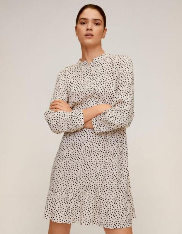 Платье свободного кроя из вискозной ткани. Модель с длинным рукавом, круглым вырезом горловины и застежкой на пуговицы спереди.Бренд Mango/Колир -молочный.100% вискоза.Размер Л. Легкая.