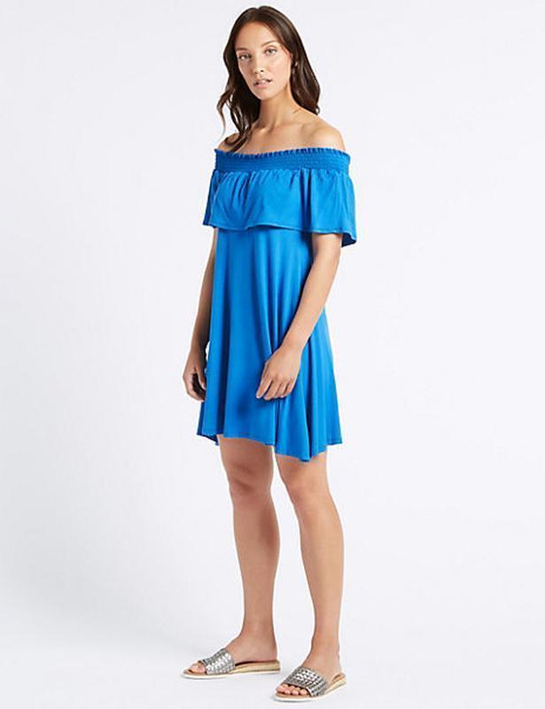 Идеальное состояние Размер указанный 8 Состав : 95% viscose, 5% elastane Замеры: Плечи резинка 39 тянется к 59 Пог 40 тянется до 57 Длина изделия 76 Стегна 75 Ширина по низу 100