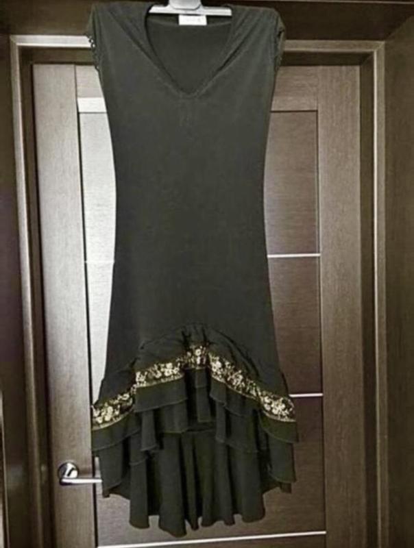 Нарядное чёрное платье (Италия). Низ ассиметричный. По спинке длина 102 см, по переду в самом коротком месте 81 см, по талии 29 см, по груди 33 см. И тянется примерно на 10 см. Подойдёт на размеры от S до М. По низу платье красивая вышивка кружевом и бисером золотистого цвета. Новое состояние. Одевалось один раз