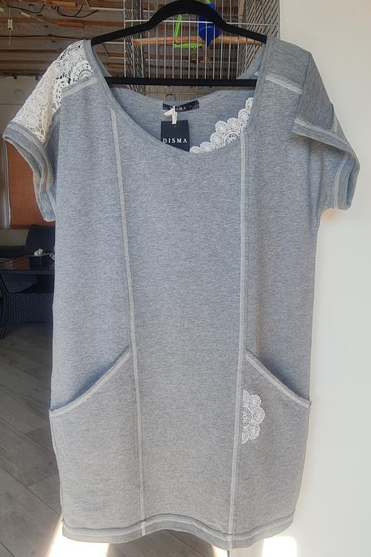Платье со вставками из хлопкового кружева, очень красиво смотрится изящно и стильно. По бокам два кармана. Ткань лёгкая, приятная к телу. Хлопковый натуральний трикотаж. Можно носить как платье или как тунику под лосины.